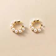 ANYCO Fashion Earrings Gold 925 Sterling Synthetic Pearl Ear Cuff Sweet No Piercing Ear Clip On for Women Jewelry