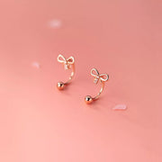 ANYCO Fashion Earrings Rose Gold 925 Sterling Cute Romantic Bow Thread Beads Unique for Women Jewelry Gifts