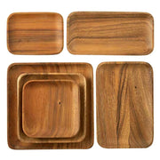Anygleam Brown 6pcs Acacia Wood Plate Food Kitchen Tableware