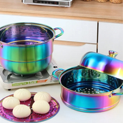 Anygleam Food Steamer Rainbow Three Layer Thick Stainless Steel Universal Cooking for Induction Cooker Gas Stove Steam Pot