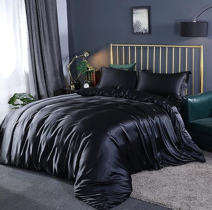 ANYHOUZ Bed Sheet Black Natural Mulberry Silk Duvet Cover Set