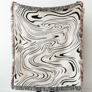 Anycozy Throw Blanket Faux Cashmere Sofa Cover Black Water Waves Pattern Tassel Soft Picnic Camping Mat 130*160cm