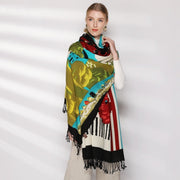 Anyyou 100% Merino Wool Red White Green Silk Satin Large Winter Scarf Pashmina Shawl Bandana Perfect For Women Ladies Fashion Style