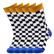 Anyfootwear 5 Pairs Size 5-14 Fashion Socks Novelty Skateboard Squares Black and White Pattern Cotton for Women Dark Blue