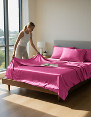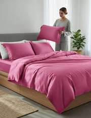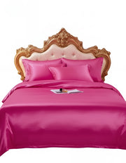 Anycozy Beddings Hot Pink AU Queen Size 3 Pcs High End Satin Smooth Duvet Cover Set Luxury Polyester Silky Soft Cozy Bedding Set