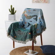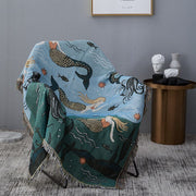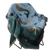 Anycozy Throw Blanket Blue Faux Cashmere Sofa Cover Mermaid Pattern Tassel Soft Picnic Camping Mat130*160cm