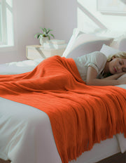 Anycozy Orange Faux Cashmere Throw Blanket Diamond Knit 130x230cm