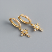 ANYCO Earrings Gold Plated Luxury Pave Crystal Zircon Ethnic Cross Gothic Stud For Women Girl Teen Fashion Stylish Accessories Jewelry Gifts