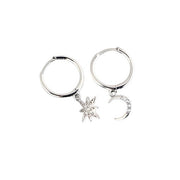 ANYCO Earrings Sterling Silver Creative Asymmetric Star Moon Ear Stud For Women Girl Fashion Stylish Rock Punk Accessories Jewelry Gifts