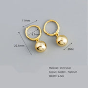 ANYCO Earrings Sterling Silver Minimalist 8mm Round Bead Pendant Stud For Women Girl Teen Chic Fashion Stylish Accessories Jewelry Gifts