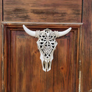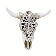 ANYDECO Figurine Retro Resin Longhorn Cow Head Sculpture Hanging Ornament Wall Decor