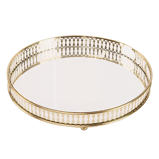 View full detailsANYHOUZ 31.5cm Gold Round Glass Mirror Base Metal Vanity Food Serving Organisr Jewelry Cosmetics Storage Tray with Handle