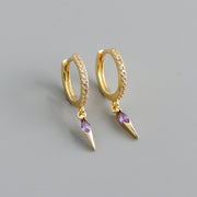 ANYCO Earrings Gold Plated Bohemian Geometric Purple Zircon Hanging Tassel Stud For Women Girl Teen Fine Fashion Stylish Accessories Jewelry Gifts