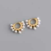 ANYCO Earrings Gold Plated Bohemian Round Synthetic Pearl Stud For Women Girl Teen Elegant Fashion Stylish Accessories Jewelry Gifts