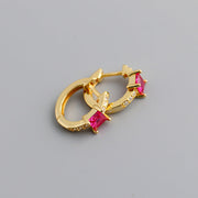 ANYCO Earrings Gold Plated Red Luxury Square CZ Round Ear Buckle For Women Girl Teen Chic Fashion Stylish Accessories Jewelry Gifts