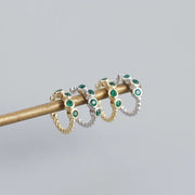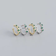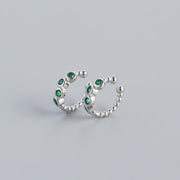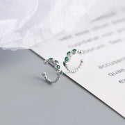 ANYCO Earrings Sterling Silver Unique Non Pierced Micro Pave Green Zircon Small For Women Girl Fashion Stylish Rock Punk Accessories Jewelry Gifts