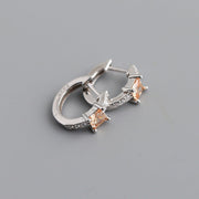 ANYCO Earrings Sterling Silver Yellow Luxury Square CZ Round Ear Buckle For Women Girl Teen Chic Fashion Stylish Accessories Jewelry Gifts