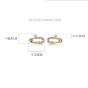 ANYCO Fashion Earrings Chic Small Pave Zircon Paper Clip Pin Stud Genuine Sterling Silver Jewelry Gift for Women