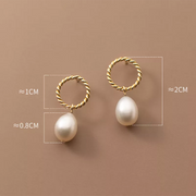 ANYCO Fashion Earrings Gold 925 Sterling Silver Hoop Twist Hanging Natural Baroque Pearl Drop for Women Classic Charms Party Jewelry