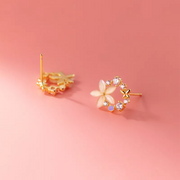 Anyluxe Fashion Earrings Gold 925 Sterling Silver Romantic Synthetic Opal Flower Stud Women Jewelry