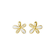 ANYCO Fashion Earrings Gold 925 Sterling Silver Romantic White Enamel Cute Gold Flower Stud for Women Jewelry Gift