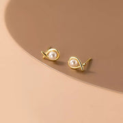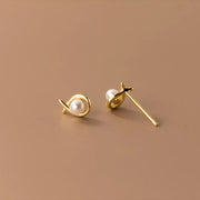 ANYCO Fashion Earrings Gold 925 Sterling Silver Simple Geometric Line Synthetic Pearl Small Stud for Women Piercing Jewelry
