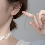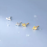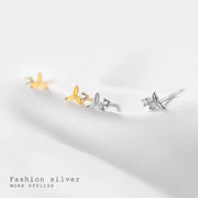 ANYCO Fashion Earrings Gold 925 Sterling Silver Simple Sweet Clover Shiny Zircon Small Stud Teen Chic Ear Bone Piercing Women Jewelry