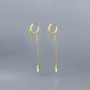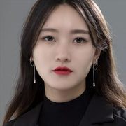 Anyluxe Fashion Earrings Gold 925 Sterling Silver Tassel Chain Square Zircon Ear Buckle for Women Jewelry Accessories