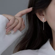 ANYCO Fashion Earrings Silver 925 Sterling Geometric Exquisite Shiny Zirconia Tassel Bead Drop Women Jewelry