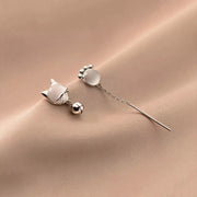 ANYCO Fashion Earrings Silver 925 Sterling Unique Cat Claw Chain Tassel Bell for Women Cute Cat Jewelry