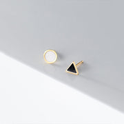 ANYCO Fashion Earrings Simple Geometric Round Black Triangle Zircon Stud for Women Classic Small Jewelry Accessories