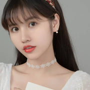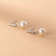 ANYCO Fashion Earrings Sterling Silver Trendy Pave Zircon Pearl Pendant Stud for Women Chic Charm Party Jewelry Accessories