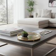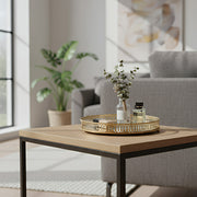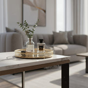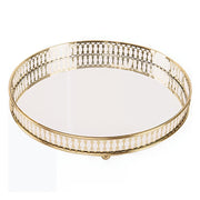 ANYHOUZ 25cm Gold Round Glass Mirror Base Metal Vanity Food Serving Organizer Jewelry Cosmetics Storage Tray with Handle