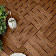 Decking Tiles Red Brown 2 Set of 11 PCS DIY Wooden Composite Garden Outdoor Backyard Flooring Home Decor