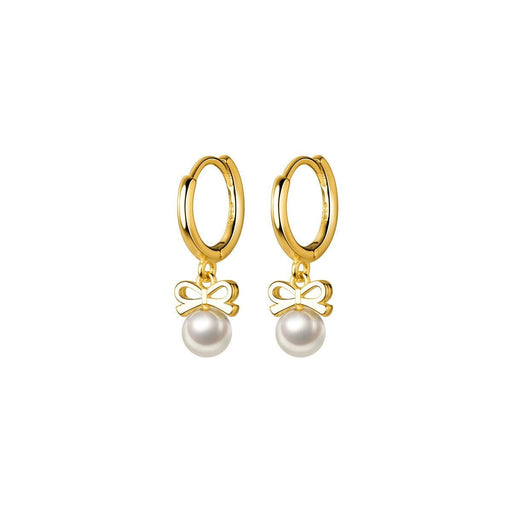 ANYCO Fashion Earrings Sterling Silver Cute Butterfly Synthetic Pearl Pendant Drop Charm Gold Plated Huggies Jewelry For Women