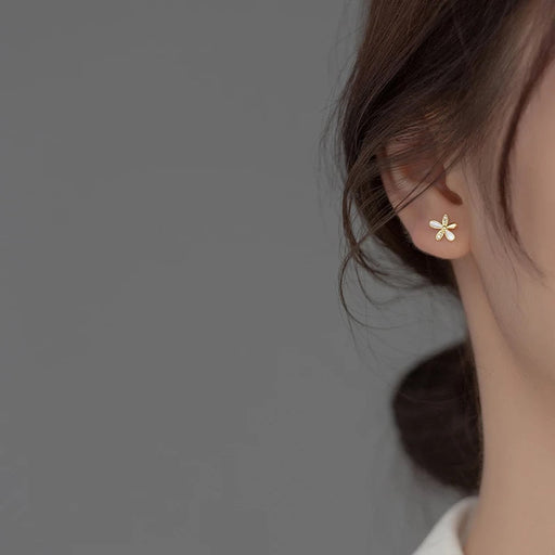 ANYCO Fashion Earrings Gold 925 Sterling Silver Romantic White Enamel Cute Gold Flower Stud for Women Jewelry Gift