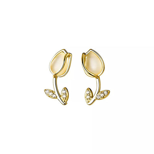 ANYCO Fashion Earrings Gold 925 Sterling Silver Romantic Statement Tulip Stud for Women Flower Jewelry