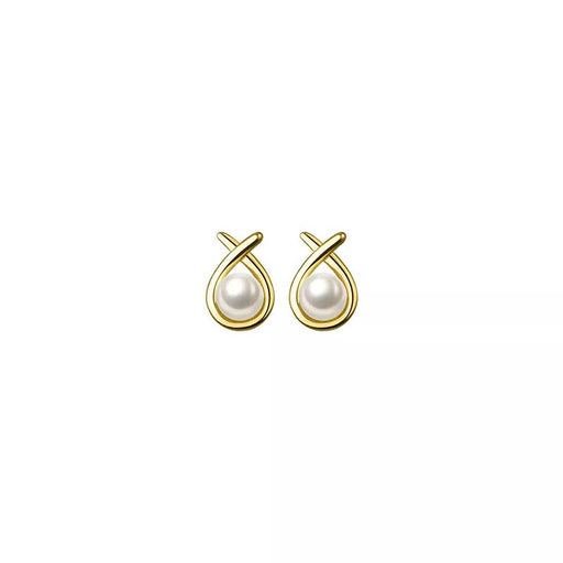ANYCO Fashion Earrings Gold 925 Sterling Silver Simple Geometric Line Synthetic Pearl Small Stud for Women Piercing Jewelry
