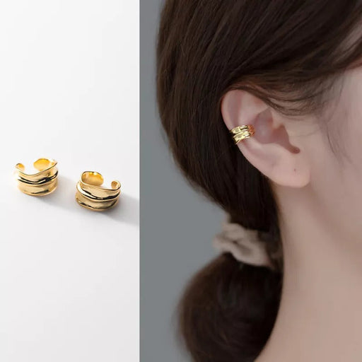 ANYCO Fashion Earrings Gold 925 Sterling Silver Simple No Piercing Three-layer Geometric Ear Clip Women Ear Cuff Jewelry