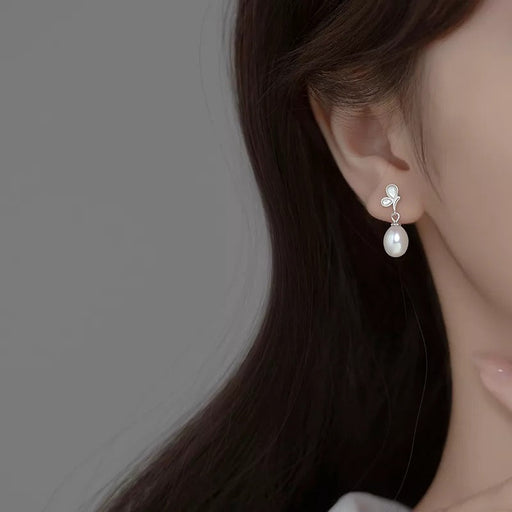 ANYCO Fashion Earrings Silver 925 Sterling Elegant Synthetic Pearl Butterfly Pendant Charm for Women Jewelry