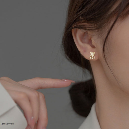 View full detailsANYCO Fashion Earrings Sterling Silver Cute Opal Hollow Bear Small Earrings for Women Fashion Hip Hop Animal Jewelry Ear Bone Accessories