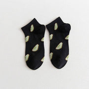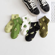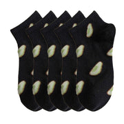 Anyfootwear 5 Pairs One Size 5-9 Black Spring Summer Cotton Avocado Breathable School Girl For Female Ankle Socks