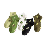 Anyfootwear 5 Pairs One Size 5-9 Random Spring Summer Cotton Avocado Breathable School Girl For Female Ankle Socks
