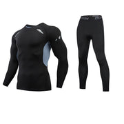 ANYMENS Fitness Clothes Black Set 2pcs Men Compression Grey Line Sportswear Suit Gym Tight Sports Running Workout Jogging Tracksuit Pants