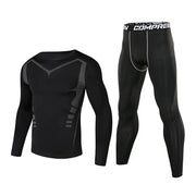 ANYMENS Fitness Clothes Black Set 2pcs Men Compression V Line Sportswear Suit Gym Tight Sports Running Workout Jogging Tracksuit Pants