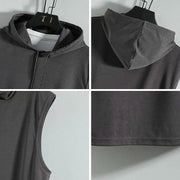 ANYMENS Fitness Tshirt Black Loose Sleeveless Muscle Hoodie Vest Body Building Gym Workout Shirt For Men