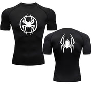 ANYMENS Fitness Tshirt Black With Front Back white Spider Print Gym Workout Compression Short Sleeve Quick Dry Athletic Tops Sportswear For men