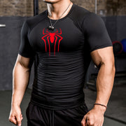 ANYMENS Fitness Tshirt Dark Blue With Small Spider Red Print Gym Workout Compression Short Sleeve Quick Dry Athletic Tops Sportswear For men