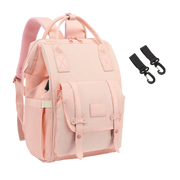 Anymom Mommy Diaper Bag Pink Backpack 2Pcs Stroller Hook with Internal USB Charging Port
