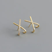 ANYCO Stud Earrings Letter X Bohemia Punk Cross White Zircon Bohemia Charms for Women Party Rock Jewelry Gift Gold
